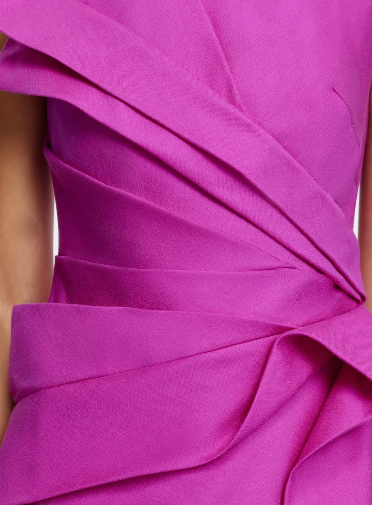 The Kenley Mini Dress in Amethyst is a sculptural silhouette designed in textured slub fabric. Featuring a sleeveless design, this mini dress showcases structured panel detailing through the bodice and skirt for a flattering fit. A back zip closure ensures ease of wear, while full lining provides a smooth silhouette.